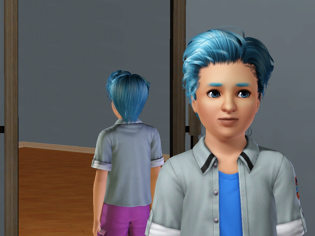 "Here!" She responded while carrying one of the triplets, Mackenzie. I had aged them up a few days ago so it would be easier when it came to the move. (I'll show you their pictures later when I age up the rest of the kids.)